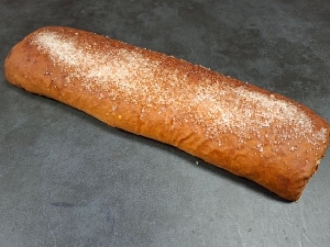 Lækker bløddejsstang med fyld af æblestykker, remonce og kanel